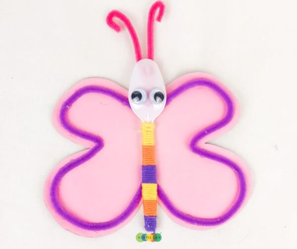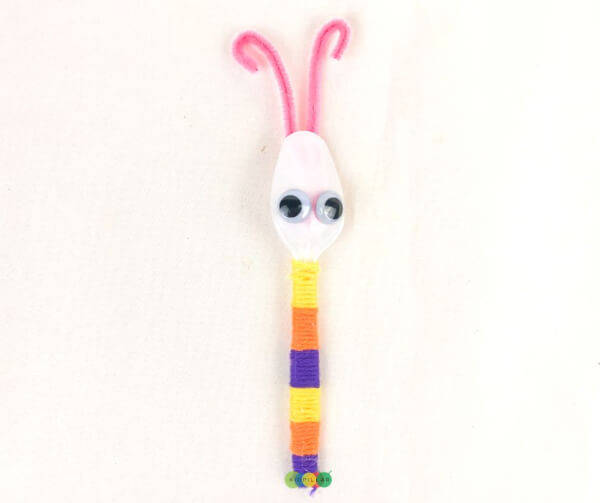Step 5: Paste googly eyes on the back of the spoon and attach two antennae to complete the butterfly’s body.