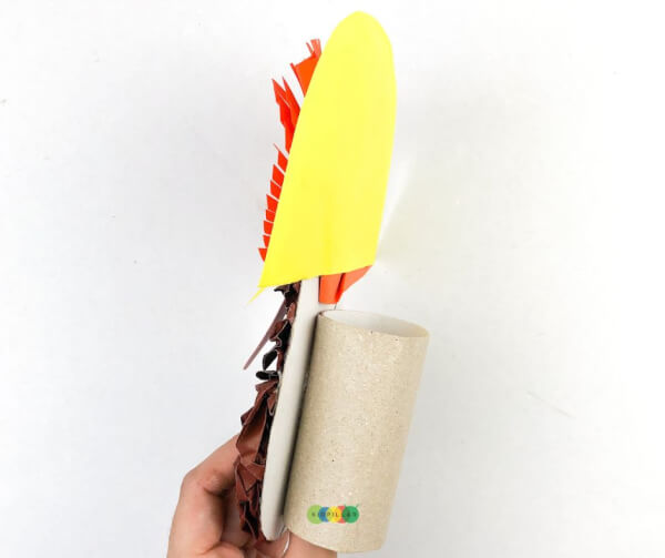 12. Paste the cardboard cylinder on the turkey’s back, below the feathers. This will give stability to the paper turkey and help it in standing.