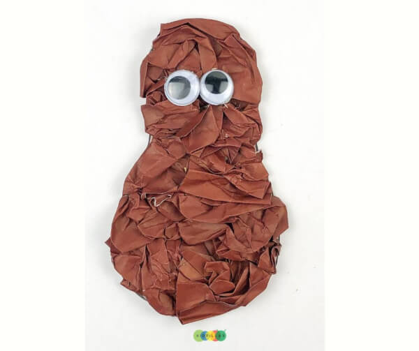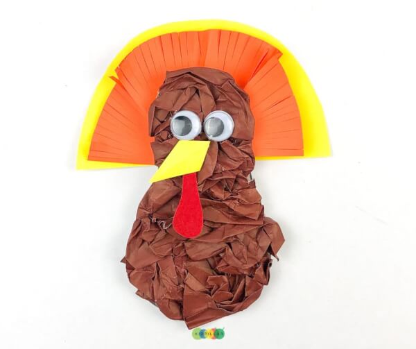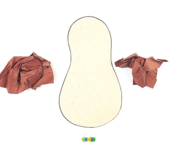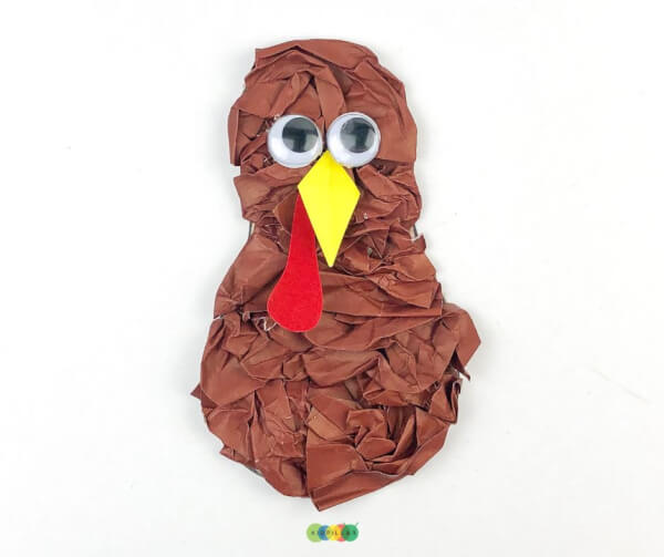3. Crumble the brown sheets and paste them on the cardboard. Make sure to cover all of the cardboard to complete your turkey craft’s body.