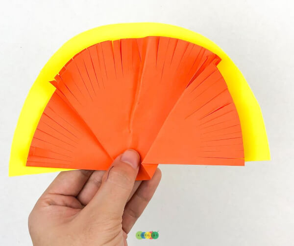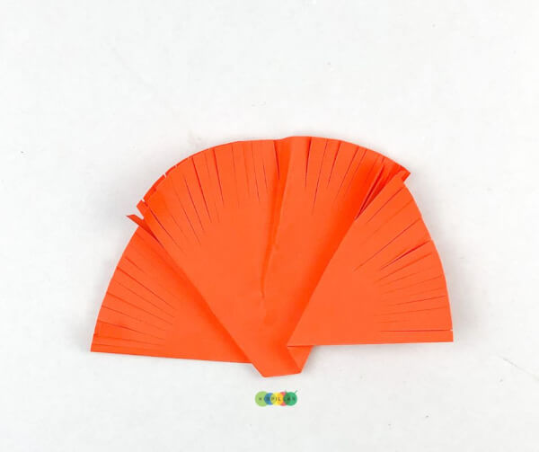 7. Fold the orange circle into half and cut it along the circumference to make thin fringes.