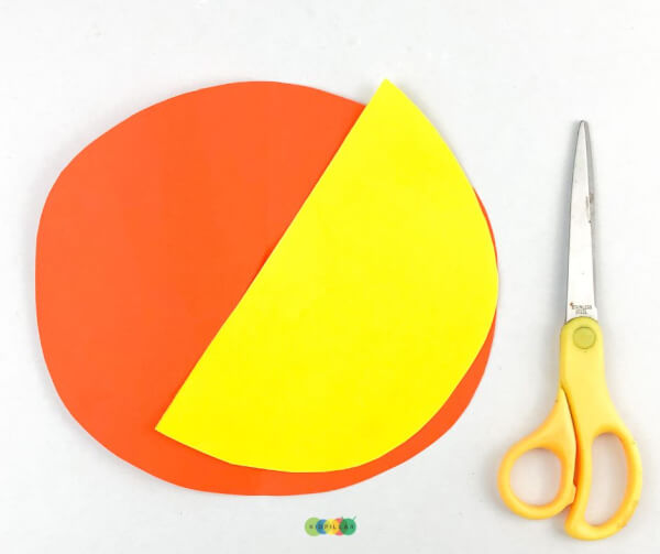 6. To make colorful turkey feathers, cut out a circle from orange construction paper and a semi circle from yellow paper.