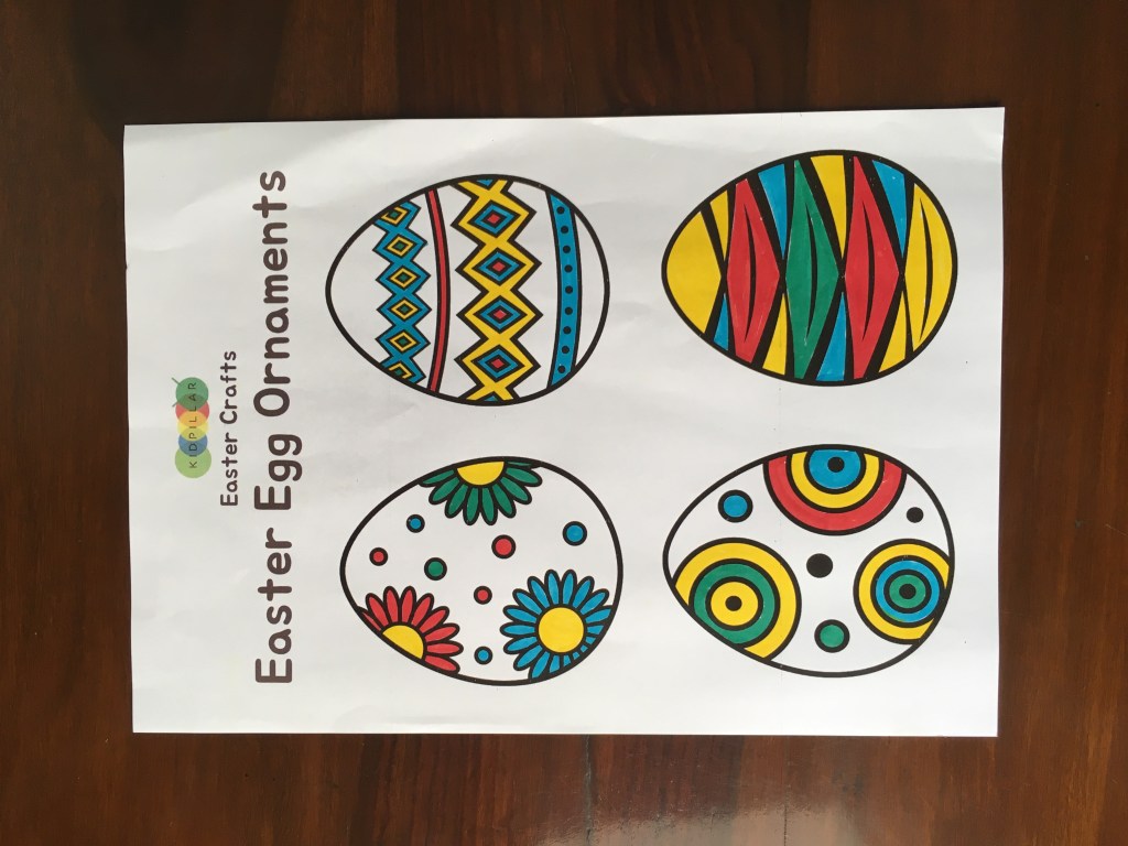 Simply print the Easter egg ornaments template on heavy paper or card stock. Let your children color the eggs using crayons and decorate them using decorative material like echo-friendly glitter.