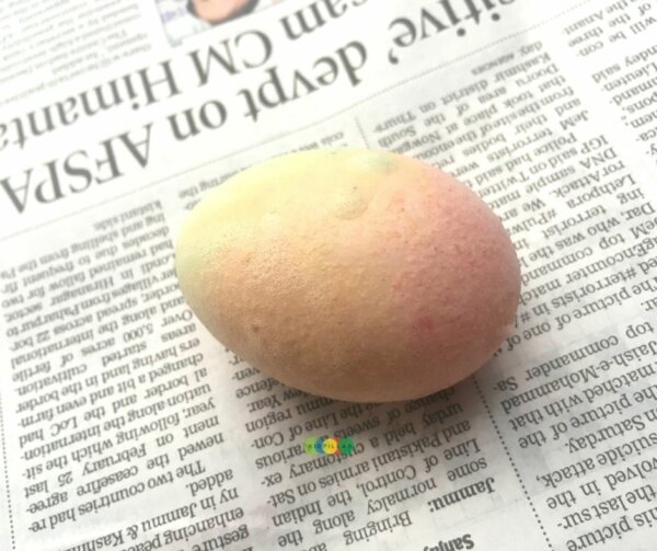 5. Take the eggs out once they are nicely covered with the colored foam and keep them aside to dry.