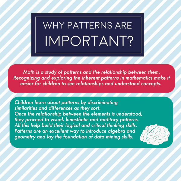 Prepare your child for a knack in math by laying the groundwork with this unit on Patterns for Kids. Patterns help children see linkages between numbers and identify realtionships between them. This unit is a must for math skills.