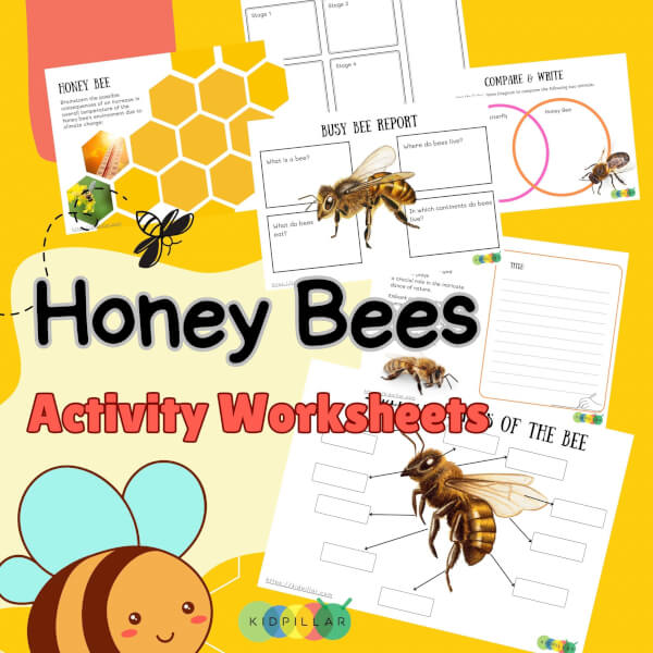 This honey bee study unit is a great resource for homeschooling and classroom. It is a set of 10 honey bee worksheets that packs honey bee anatomy, life cycle, honey bee report and a variety of writing & comprehension activities.